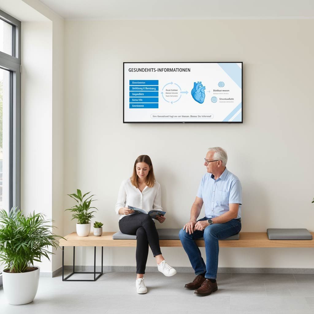 Zeigen Sie aktuelle Praxisinfos, Tipps zur Gesundheit und Services direkt vor Ort.